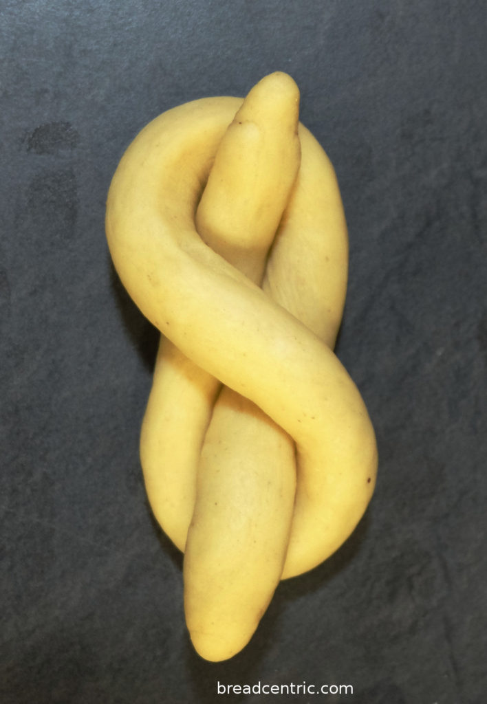 You’ll need to roll the dough into long strips. Use your palms of hands, start inside and roll out. If you feel the dough resists, put it aside, work with a different chunk and get back to it later. If you feel gas bubbles in the strip, I recommend you puncture them, as they may make your strips uneven. Oh, the strips need to be of even width. The 85 gram ones were about 35 cm in width