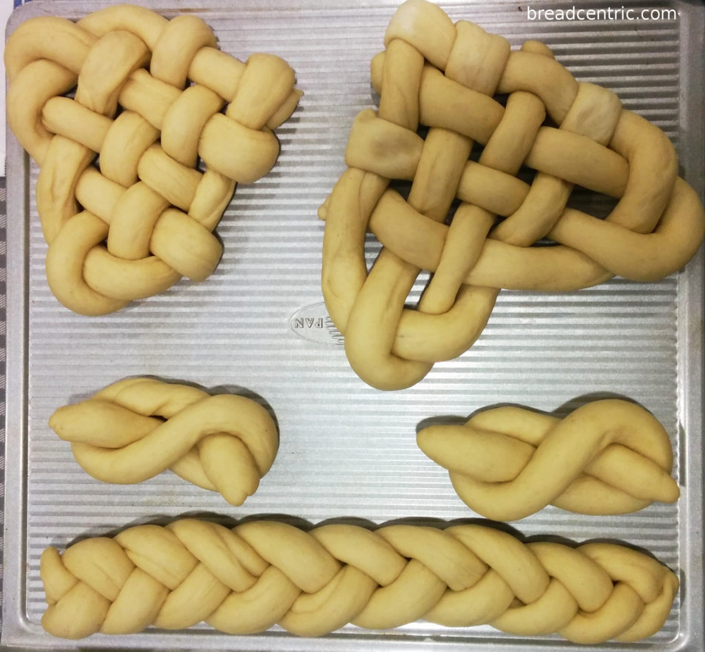 The recipe comes from J. Hamelman’s “Bread” (sources), as do the braiding ideas. There is also a book on braiding that I don’t have, but the author does magic: “The art of braiding bread” by Roberto van Krammer . If I ever get more into braiding, I’ll buy it.