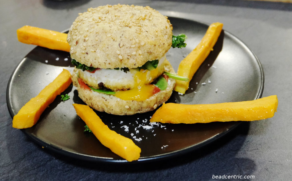 Here comes an eggburger. I fried kale a little, and the egg, sausage and chilli were fried in a stainless still cookie cutter (I don’t have any fancy egg frying stencils).